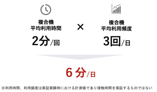 ・複合機平均利用時間約2分×平均利用回数3回=6分は滞在が見込める